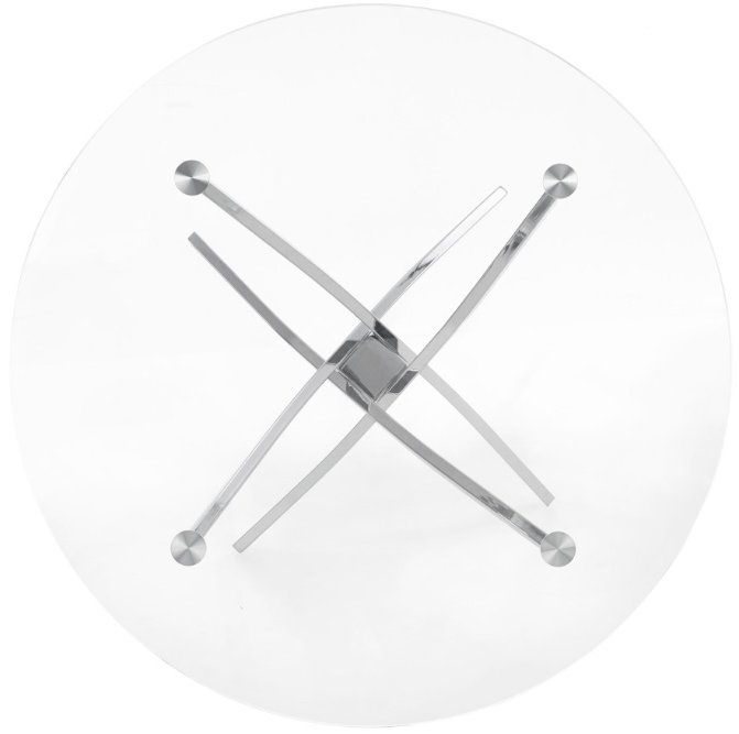 Snyggt matbord med en modern design. Underredet är tillverkat i kromad metall och toppskivan är av klarglas.