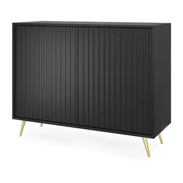 Sideboard Wohnling Runt massivt trä lantlig stil Svart, 3 lådor, Svart, 3 lådor