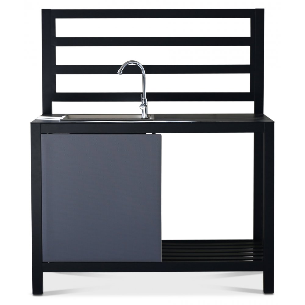 Lackö är vår byggbara serie av utekök. Huvuddelen består av köksdel med inbyggd vask och skåp med grå dörr för att dölja och förvara saker. Med ett praktisk utekök samlar man familjen och vänner till underbara utekvällar.