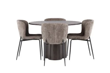 Yakidon Matgrupp 120 cm Rund med 4 Edvin stolar, Brun