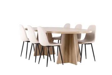 Olivia Matgrupp 210 cm Rektangulär med 6 Polar stolar, Whitewash/Beige
