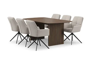 Richeto Matgrupp 180 cm med 6 Torsby Snurrstolar, Rökt ek/Ljusbeige