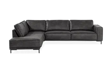 Akron 2,5-sits Soffa med Schäslong Vänster Bondedläder, Mörkgrå
