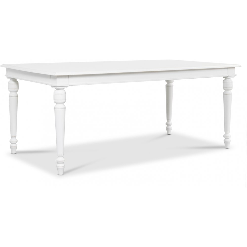 Matgrupp från Skånska Möbelhuset, Paris är ett klassiskt 180 cm matbord i vitlackat massivt trä med arbetade och väälplanerade detaljer. Sex stycken klassiska och matchande vita Gaston stolar.