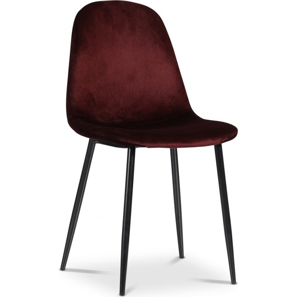 Matgrupp från Skånska Möbelhuset, Rosvik matbord 120 cm i diameter. Medföljer 4 st matchande Carisma sammetstolar i bordeauxfärgat sammet med svarta ben.