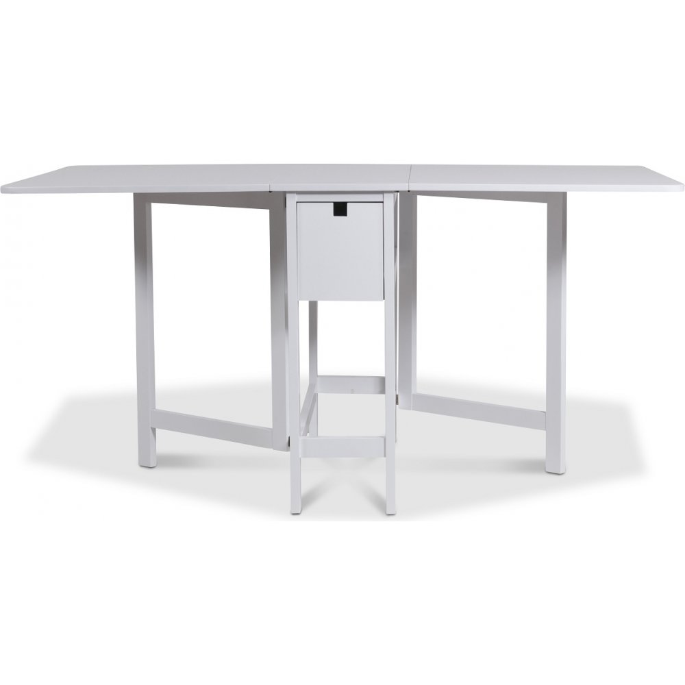 Sandhamn matgrupp Klassiskt utförande. Stilrent klaffbord med 4 st matchande Fårö stolar i vitlackat trä med grå träsits.