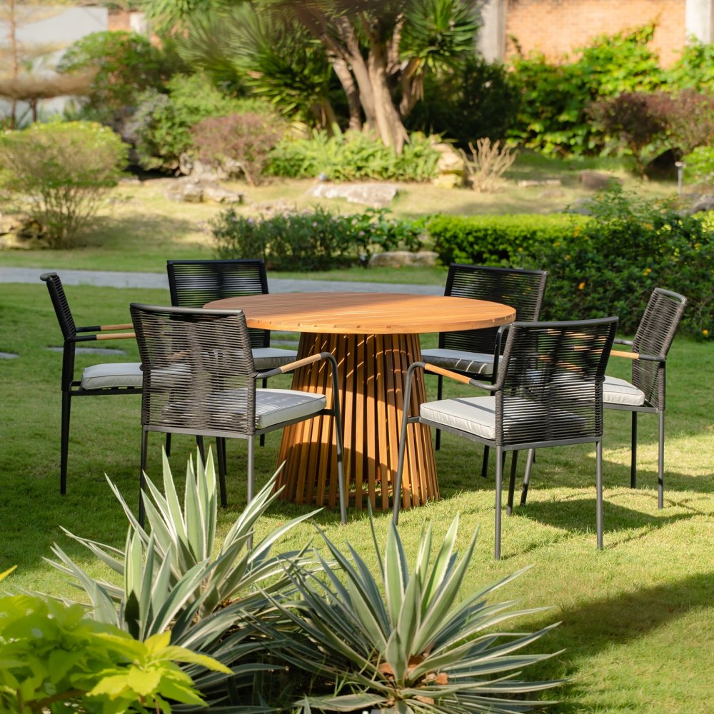 Utegrupp i teak: runt bord med 4 st karmstolar - Saltö