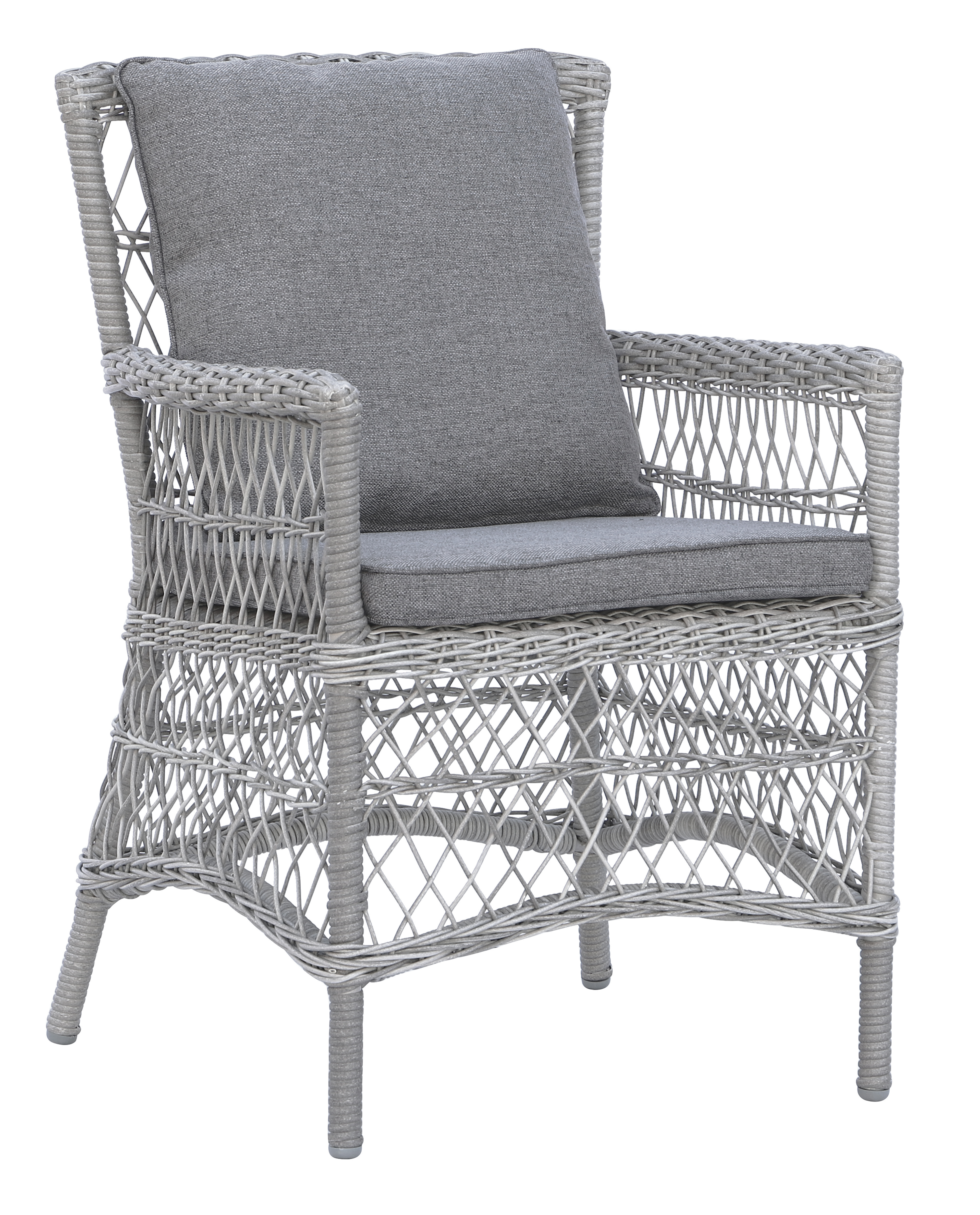 Utegrupp Provence: Scottsdale runt grå/vit matbord Ø112 cm inklusive 4 st Provence karmstolar i grå konstrotting