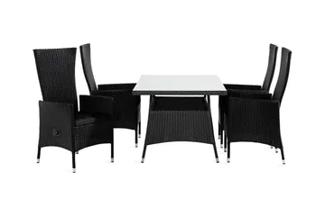 Thor Matgrupp Utomhus 140x90 + 4 Jenny Fåtölj Ställbar m Dyna, Svart/Grön